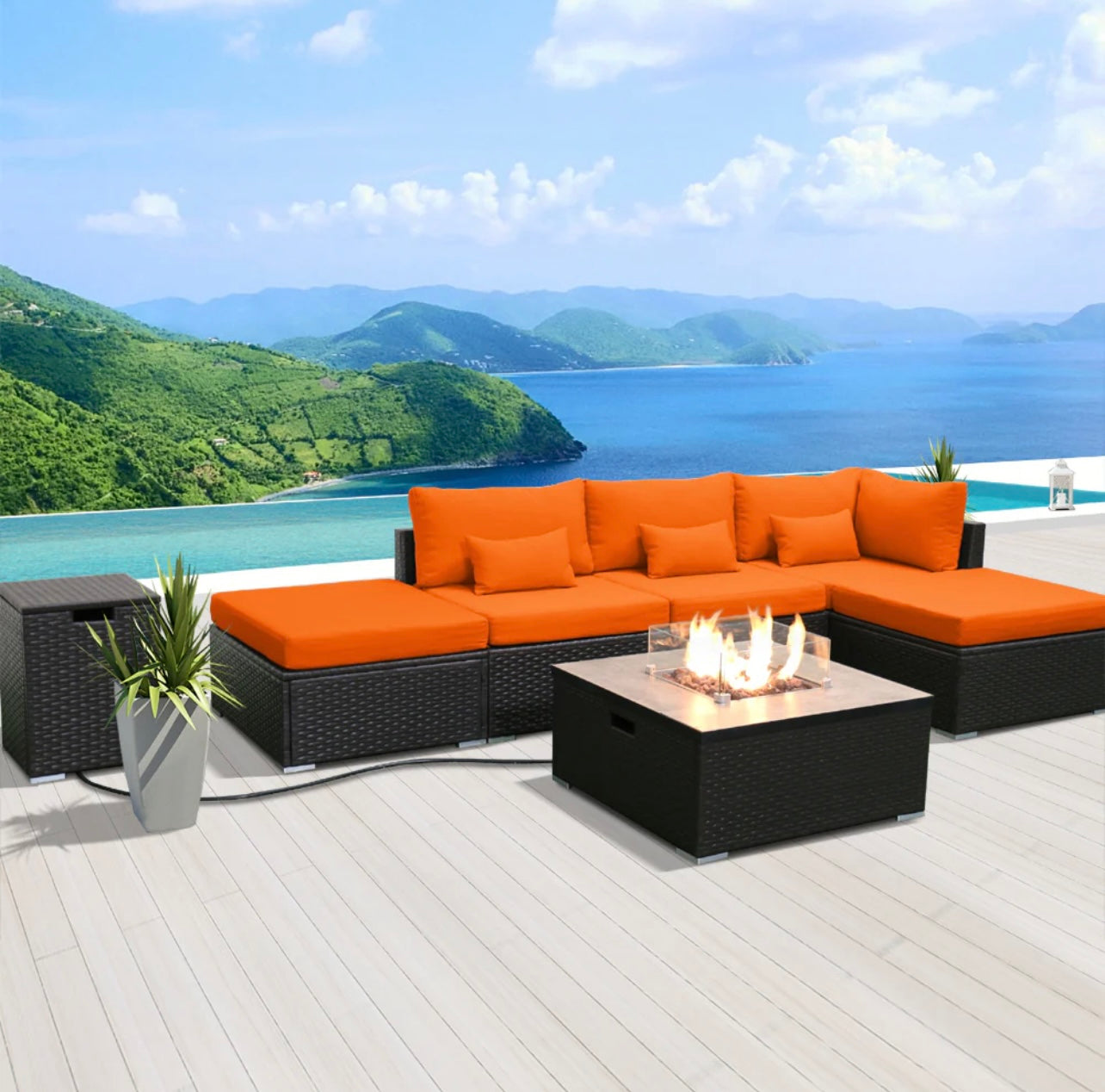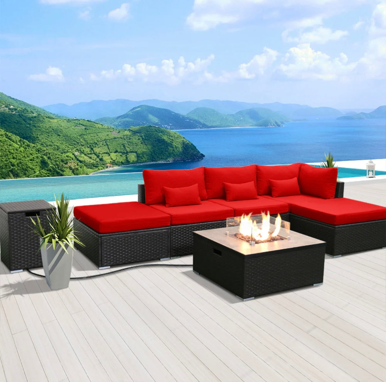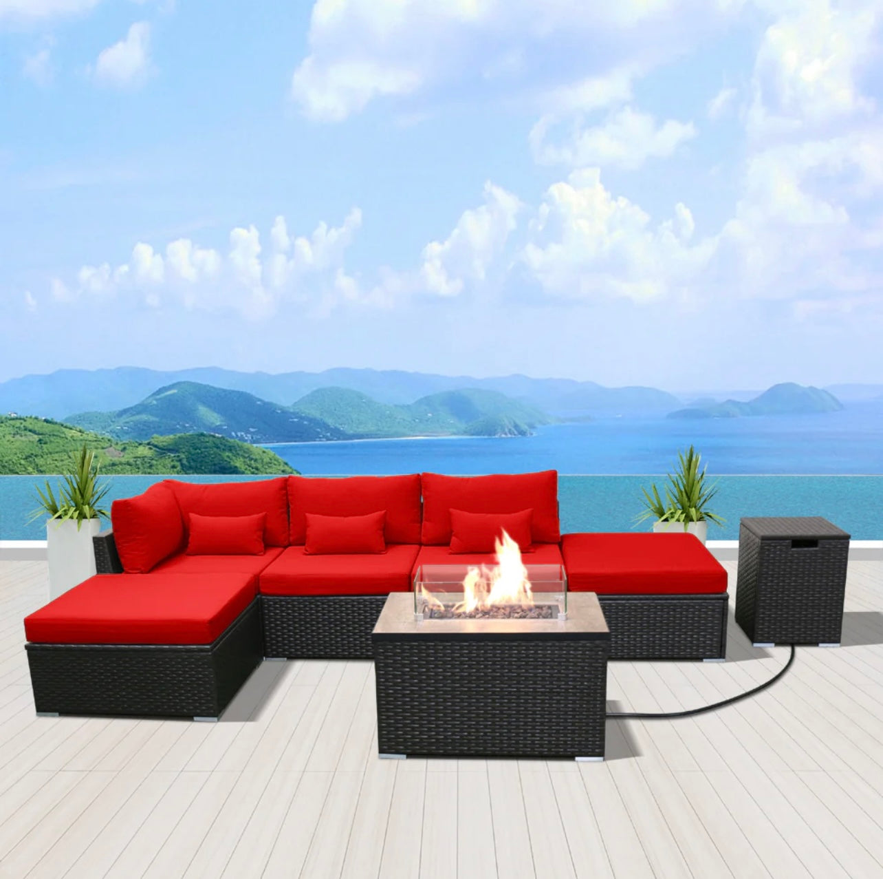 (6LS-Fire) Modern Wicker Patio Furniture Sofa Set