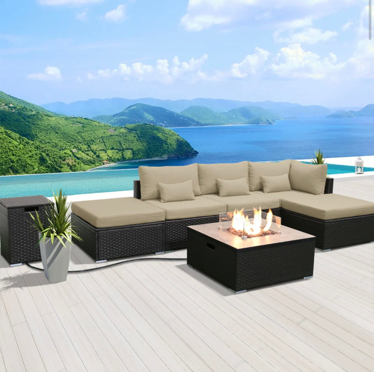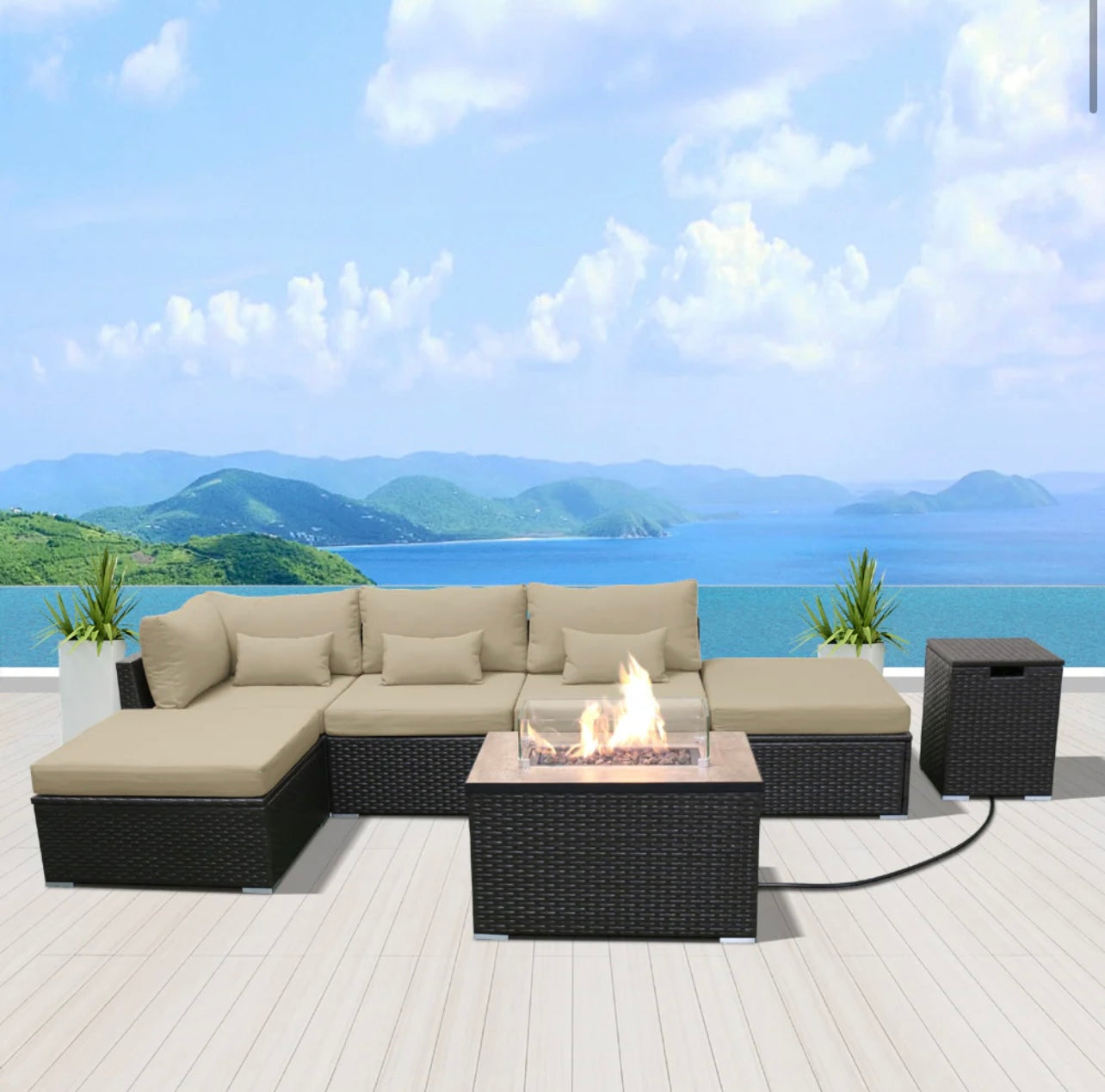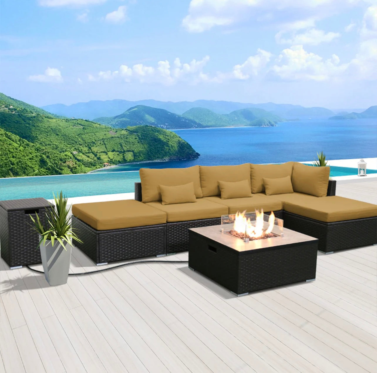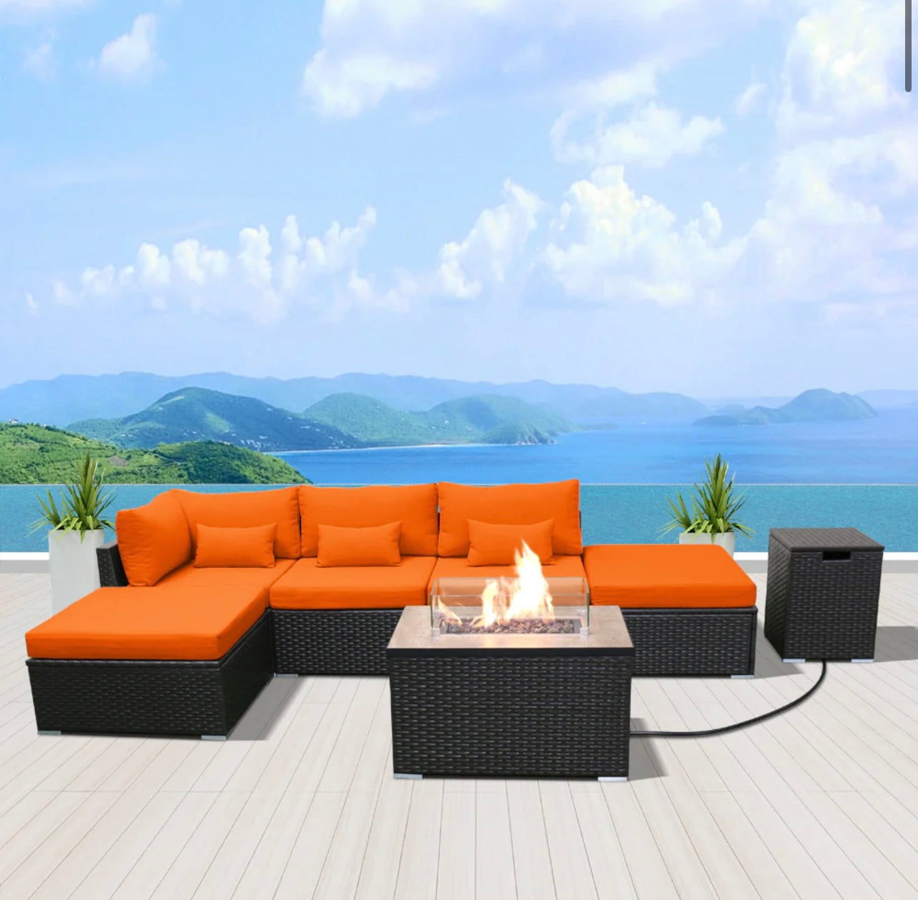 (6LS-Fire) Modern Wicker Patio Furniture Sofa Set